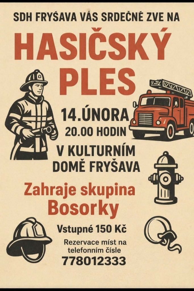 By Obec Fryšava, 5th Leden 2026 Filed under: Comments: Komentáře nejsou povolené u textu s názvem Ples SDH Fryšava 2026